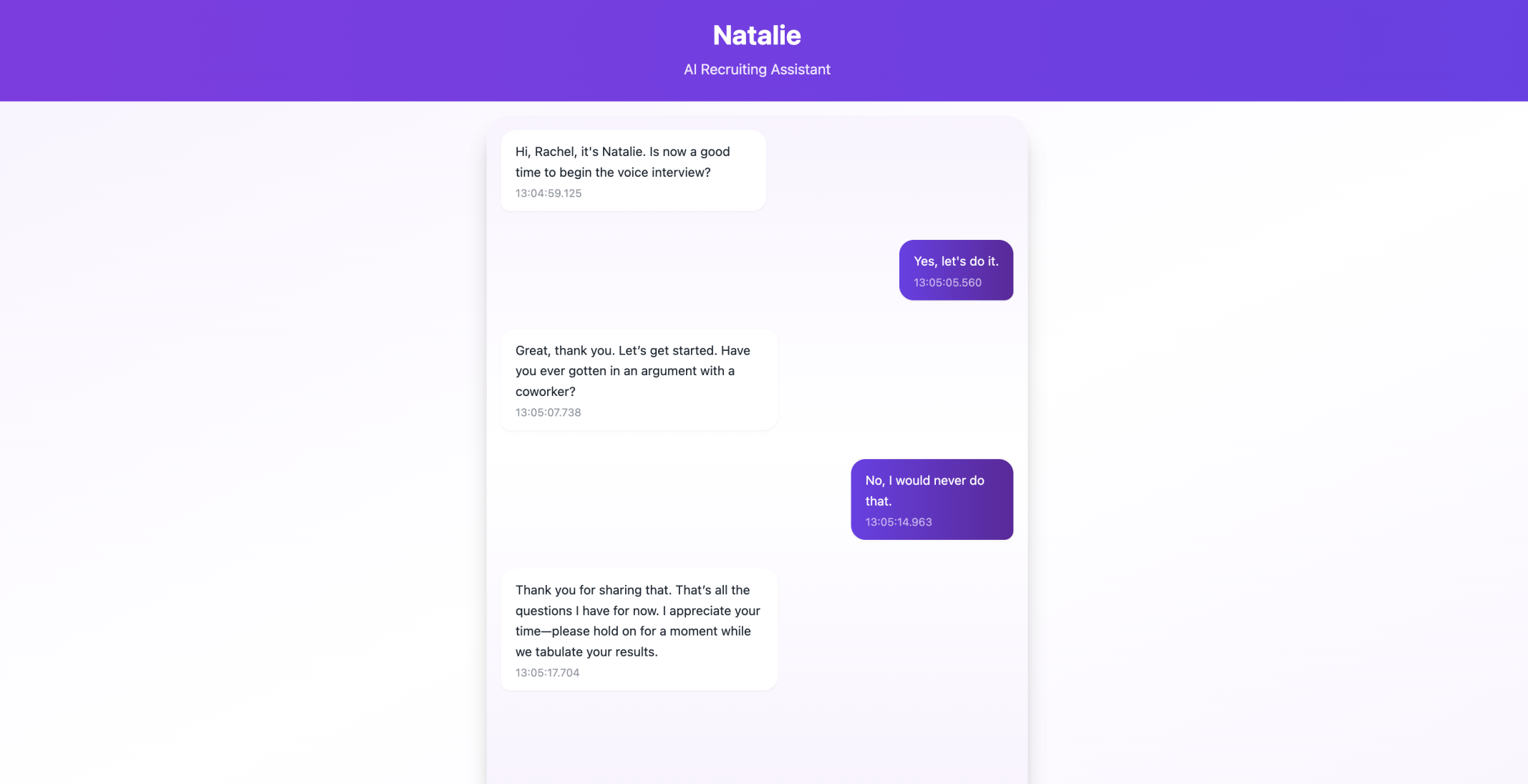 Natalie AI automates your phone screenings from start to finish. As soon as candidates apply, she engages them in conversation, asks qualifying questions, and seamlessly schedules phone or video screens — ensuring only top candidates make it to your team, faster than ever.