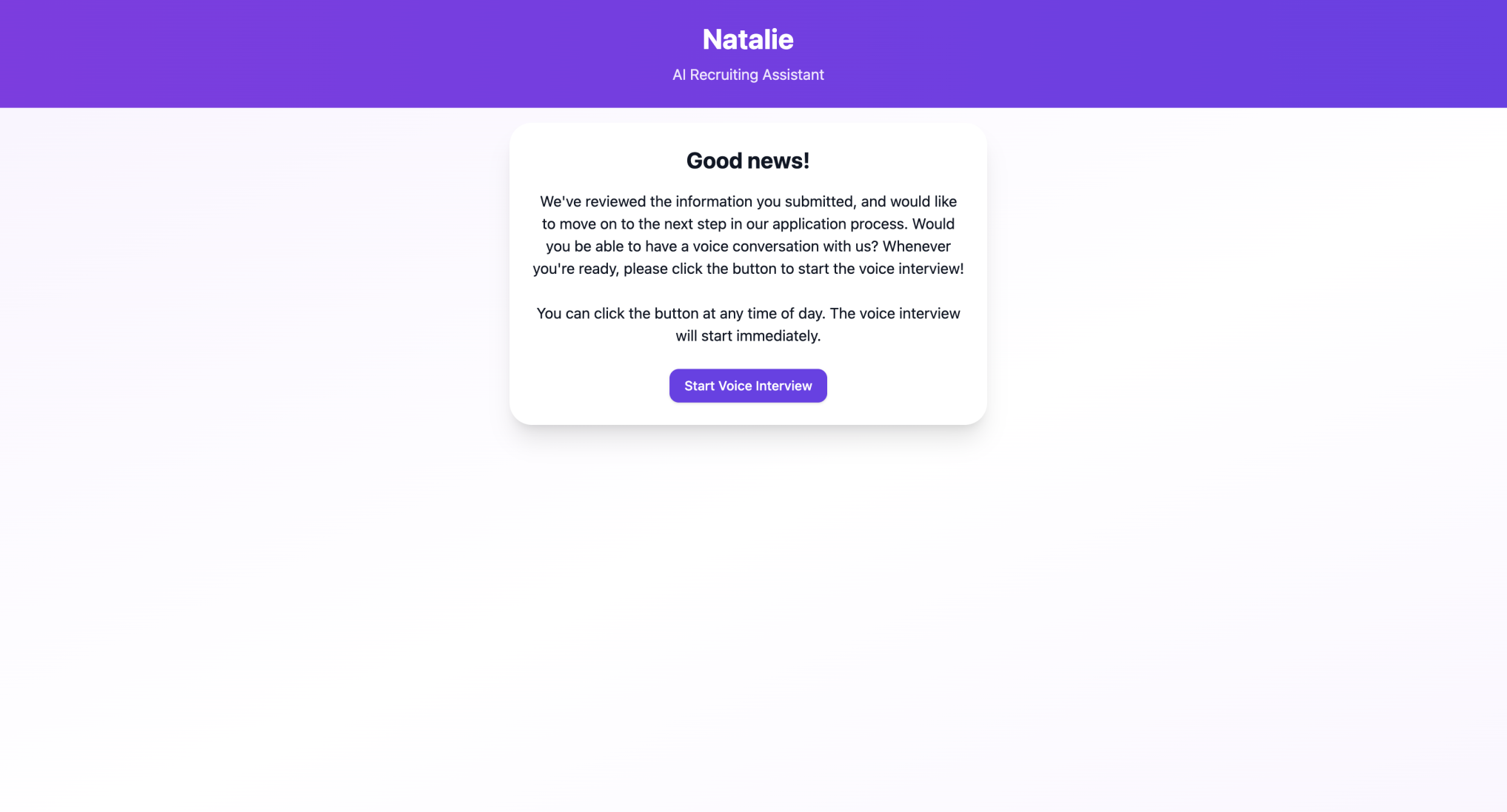 Natalie takes care of candidate engagement, interviews, phone screens, and onboarding — all powered by AI. She delivers a seamless, personalized experience that keeps candidates informed and engaged every step of the way.